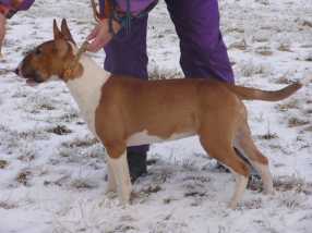 | Plemeno: | bulteriér | Barva srsti: | červená, bílé znaky, . |
