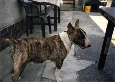 | Plemeno: | bulteriér | Barva srsti: | žíhaná, bílé znaky, . |