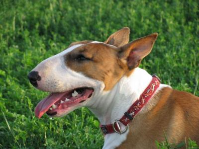 | Plemeno: | bulteriér | Barva srsti: | červená, bílé znaky, . |