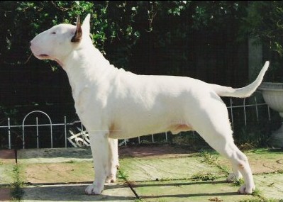 | Kalsar CORDELIA OF MERLINDAN | fena | bulteriér | bílá se znakem/znaky |