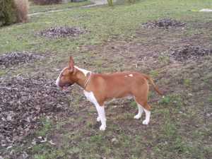 | Plemeno: | bulteriér | Barva srsti: | červená, bílé znaky, . |
