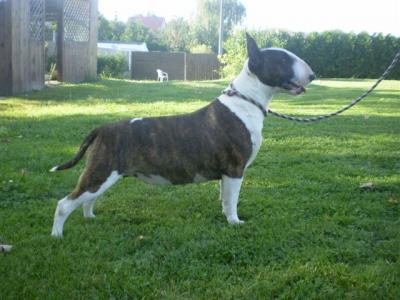 | Plemeno: | bulteriér | Barva srsti: | žíhaná, bílé znaky, . |