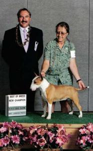 | Schardale MISS RODEO QUEEN miniaturní bulteriér, černá s žíháním, bílé znaky | Schardale MASTER ANDREW miniaturní bulteriér | |