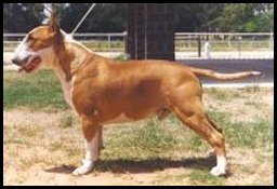 | Plemeno: | bulteriér | Barva srsti: | červená, bílé znaky, . |