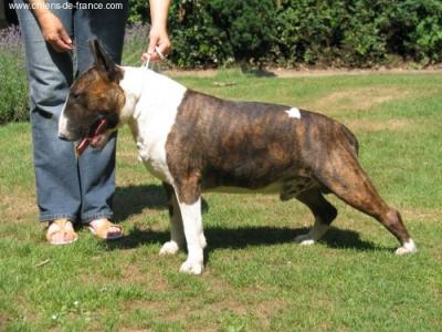 | Plemeno: | bulteriér | Barva srsti: | žíhaná, bílé znaky, . |
