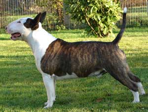 | SAVANNAH of Canterbury bulteriér, bílá se znakem/znaky | SEA COVE Alet bulteriér, žíhaná, bílé znaky | |