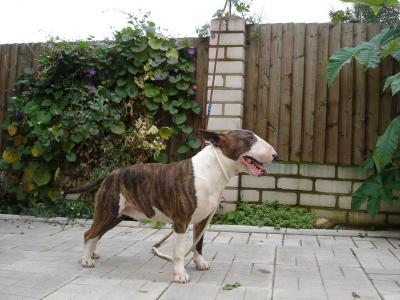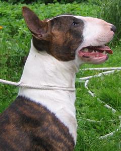 | Plemeno: | bulteriér | Barva srsti: | žíhaná, bílé znaky, . |