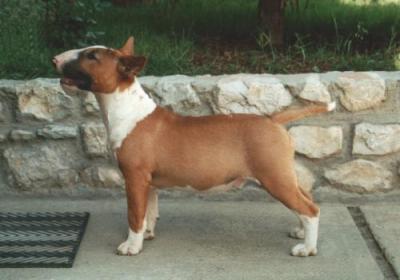 | Plemeno: | bulteriér | Barva srsti: | červená, bílé znaky, . |