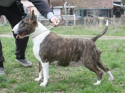 | Plemeno: | bulteriér | Barva srsti: | žíhaná, bílé znaky, . |