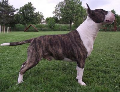 | Plemeno: | bulteriér | Barva srsti: | žíhaná, bílé znaky, . |