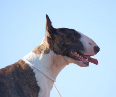 | Plemeno: | bulteriér | Barva srsti: | žíhaná, bílé znaky, . |