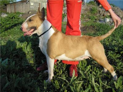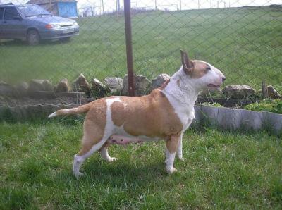 | Plemeno: | bulteriér | Barva srsti: | červená, bílé znaky, . |