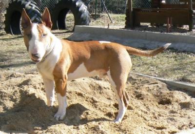 | Plemeno: | bulteriér | Barva srsti: | červená, bílé znaky, . |