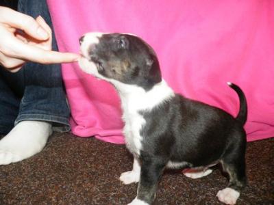 | Plemeno: | bulteriér | Barva srsti: | černá s žíháním, bílé znaky, . |