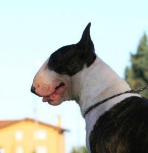 | Plemeno: | bulteriér | Barva srsti: | žíhaná, bílé znaky, . |