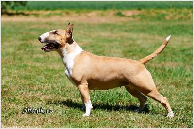 | Plemeno: | bulteriér | Barva srsti: | červená, bílé znaky, . |
