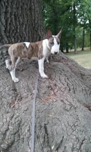 | Plemeno: | bulteriér | Barva srsti: | žíhaná, bílé znaky, . |