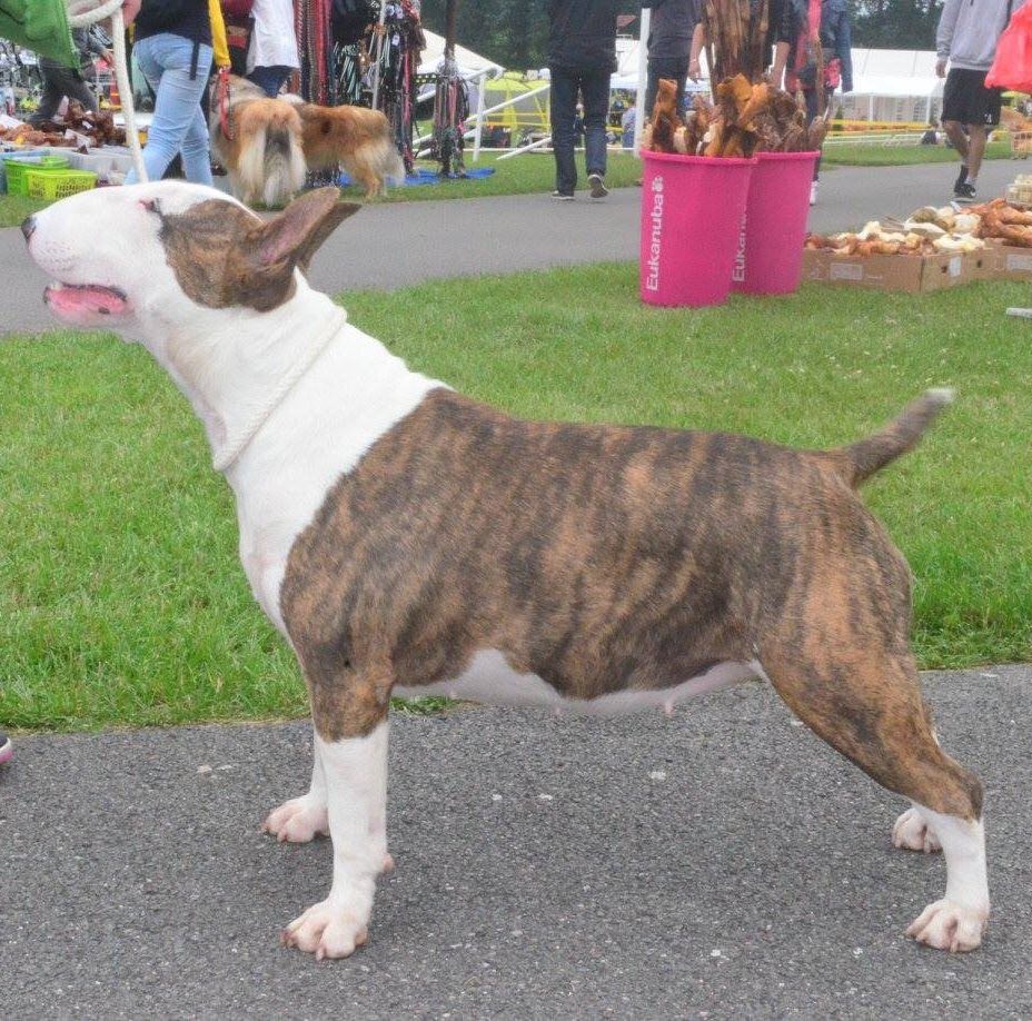 | Plemeno: | bulteriér | Barva srsti: | žíhaná, bílé znaky, . |