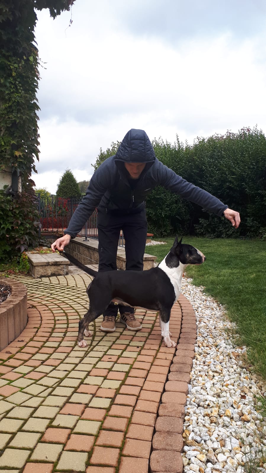 | TIMONA Daidalos | fena | bulteriér | černá s žíháním, bílé znaky |