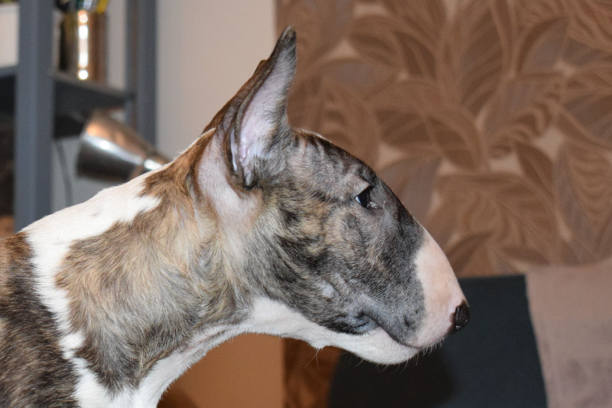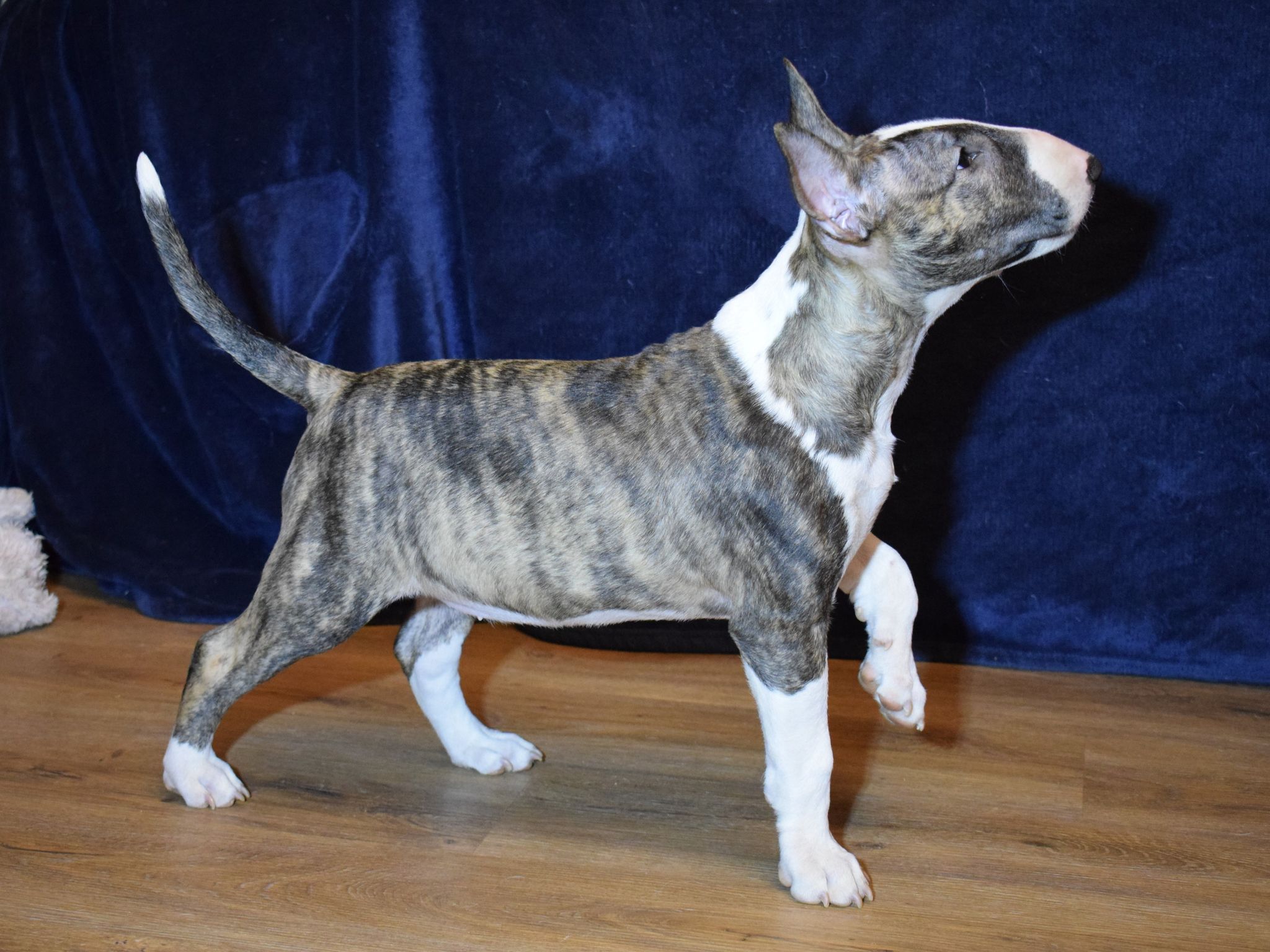 | Plemeno: | bulteriér | Barva srsti: | žíhaná, bílé znaky, . |