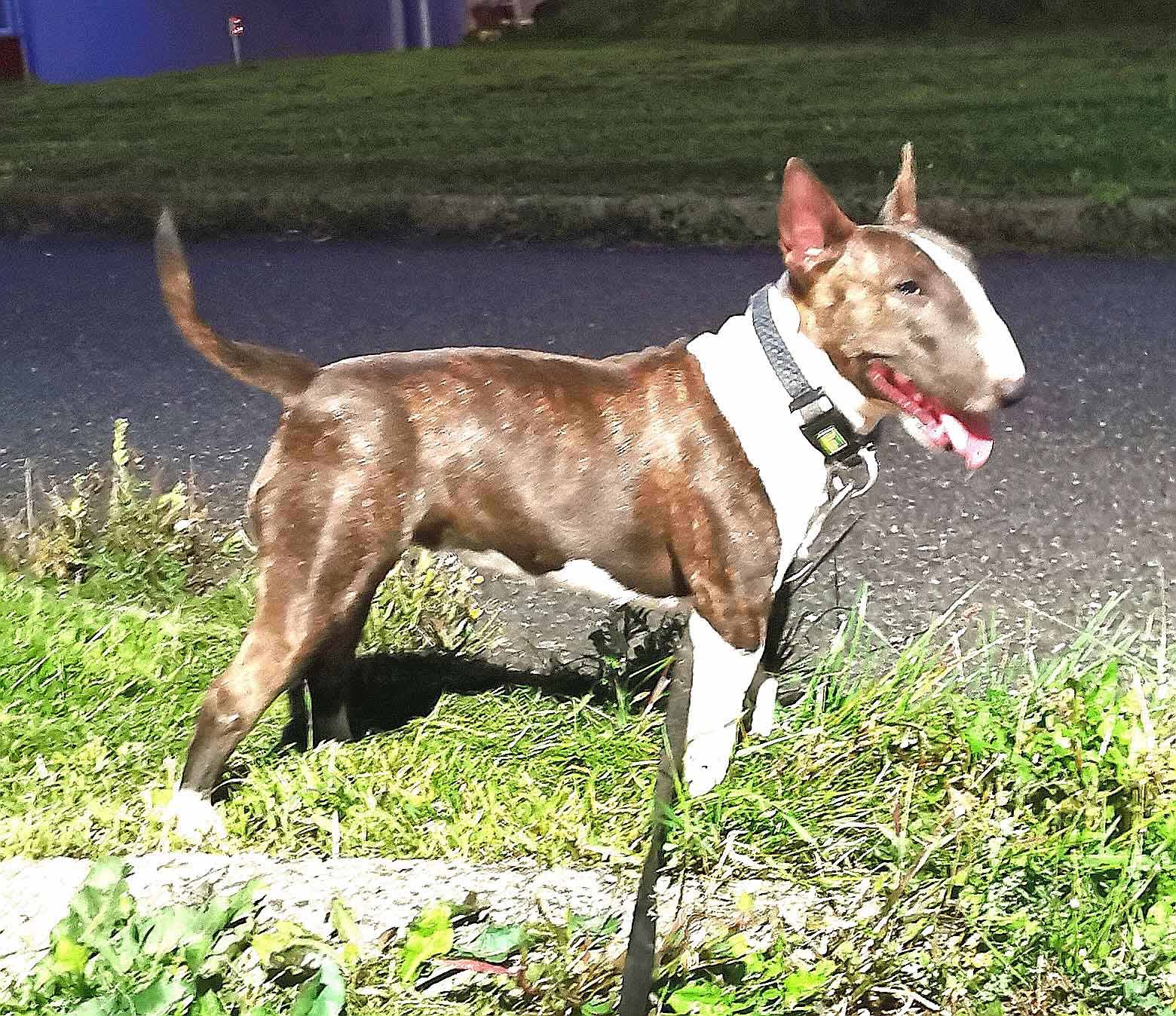 | Plemeno: | miniaturní bulteriér | Barva srsti: | žíhaná, bílé znaky, . |