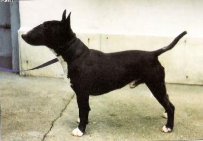 | Plemeno: | miniaturní bulteriér | Barva srsti: | černá s žíháním, bílé znaky, . |