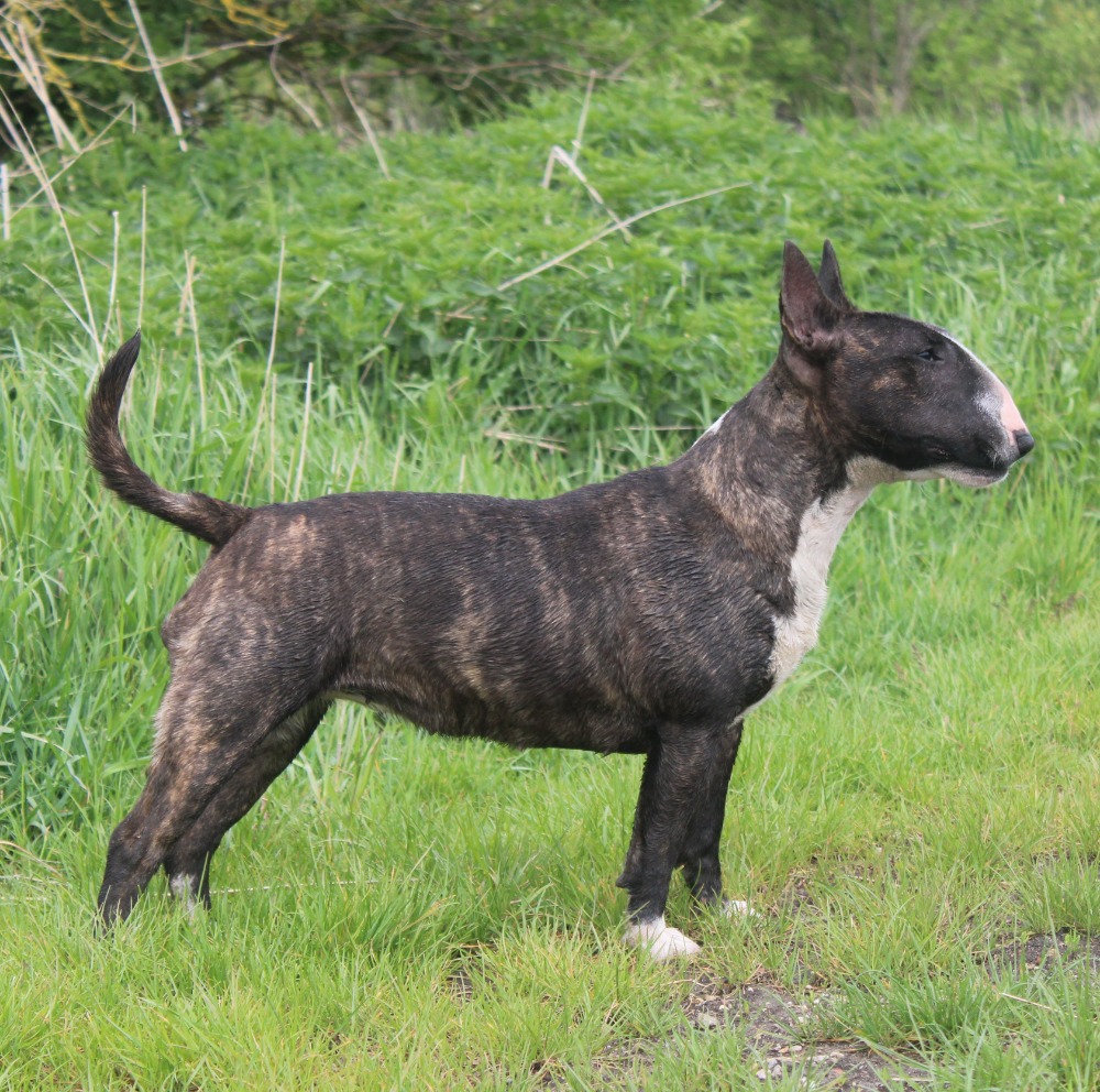 | Plemeno: | miniaturní bulteriér | Barva srsti: | žíhaná, bílé znaky, . |