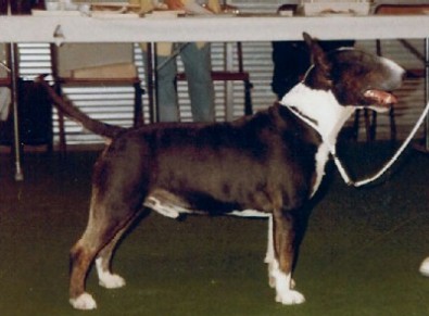 | NOBODY IS PERFECT von der Alten Veste | pes | bulteriér | černá s žíháním, bílé znaky |