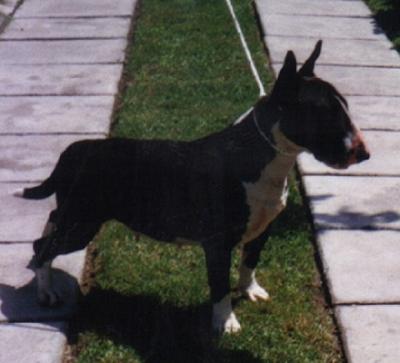 | BRENDA Jelení kámen bulteriér, černá s žíháním, bílé znaky | COOK Ruch-West bulteriér, žíhaná, bílé znaky | |