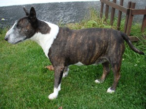 | Plemeno: | bulteriér | Barva srsti: | žíhaná, bílé znaky, . |