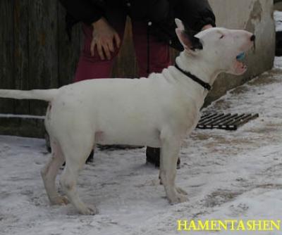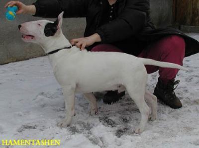 | KRAKATIT Hamentashen | pes | bulteriér | bílá se znakem/znaky |