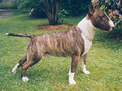 | Plemeno: | bulteriér | Barva srsti: | žíhaná, bílé znaky, . |