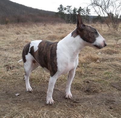 | Plemeno: | bulteriér | Barva srsti: | žíhaná, bílé znaky, . |