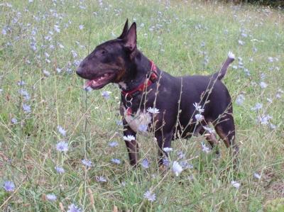 | MANTÓ Trojský kůň | fena | bulteriér | černá s žíháním, bílé znaky |