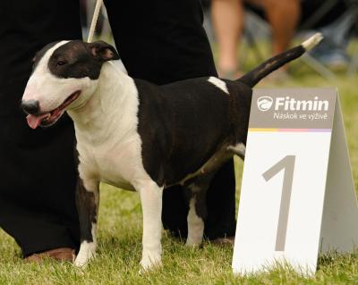 | EBONY FLY-M Wild Fámy | fena | miniaturní bulteriér | černá s žíháním, bílé znaky |