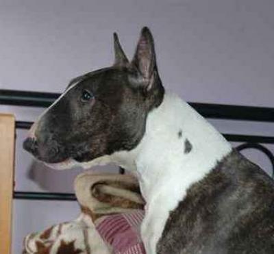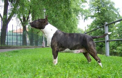 | Plemeno: | bulteriér | Barva srsti: | žíhaná, bílé znaky, . |