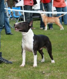 | Plemeno: | miniaturní bulteriér | Barva srsti: | černá s žíháním, bílé znaky, . |