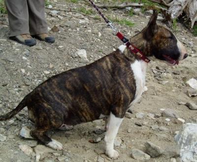 | Plemeno: | bulteriér | Barva srsti: | žíhaná, bílé znaky, . |