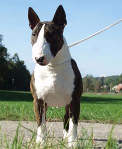 | Plemeno: | miniaturní bulteriér | Barva srsti: | žíhaná, bílé znaky, . |