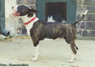| Bremars DEBUTANTE bulteriér, bílá se znakem/znaky | ||
