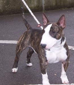 | Plemeno: | miniaturní bulteriér | Barva srsti: | žíhaná, bílé znaky, . |
