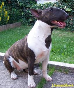 | Plemeno: | bulteriér | Barva srsti: | žíhaná, bílé znaky, . |