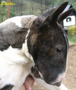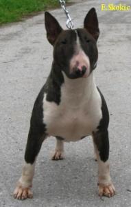 | Plemeno: | bulteriér | Barva srsti: | žíhaná, bílé znaky, . |