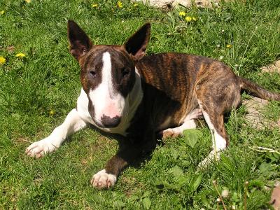 | LARA ze Světovarské zahrady | fena | bulteriér | červená, bílé znaky |